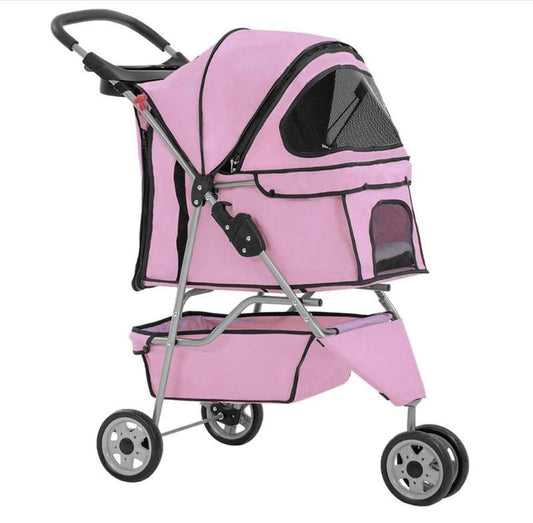 Bestoffice 3 Wheels Pet Dog Stroller Cat Cage for Medium Small Dogs Cats Travel Folding Carrier Waterproof Puppy Stroller with Cup Holder & Removable Liner,Pink